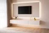 Αναβαθμίστε τον χώρο σας με αυτό το μοντέρνο επιτοίχιο έπιπλο τηλεόρασης, που συνδυάζει minimal αισθητική και υψηλή λειτουργικότητα. Ο κομψός, αιωρούμενος σχεδιασμός του δημιουργεί μια αίσθηση ελαφρότητας και καθαρότητας, ενώ παράλληλα προσφέρει πρακτικούς αποθηκευτικούς χώρους για την οργάνωση του σαλονιού σας.