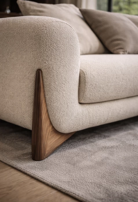 Η επένδυση από premium ύφασμα προσφέρει μοναδική υφή και αντοχή, ενώ τα ιδιαίτερα δρύινα ξύλινα πόδια σε φυσική απόχρωση αναδεικνύουν τον χαρακτήρα του επίπλου, προσθέτοντας μια διακριτική αλλά ξεχωριστή σχεδιαστική πινελιά. Κάθε λεπτομέρεια έχει σχεδιαστεί με γνώμονα την ποιότητα και την αισθητική ισορροπία, ακολουθώντας τις αρχές του αυθεντικού ιταλικού σχεδιασμού.