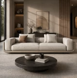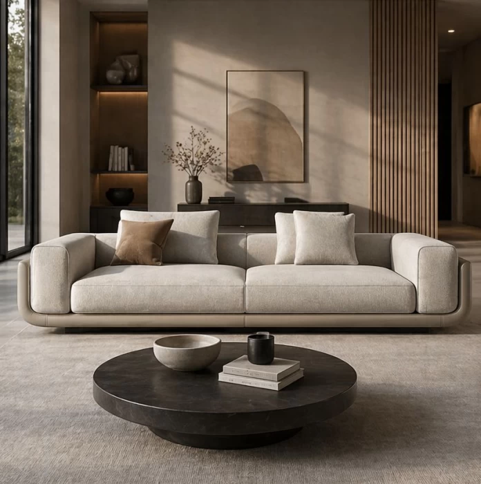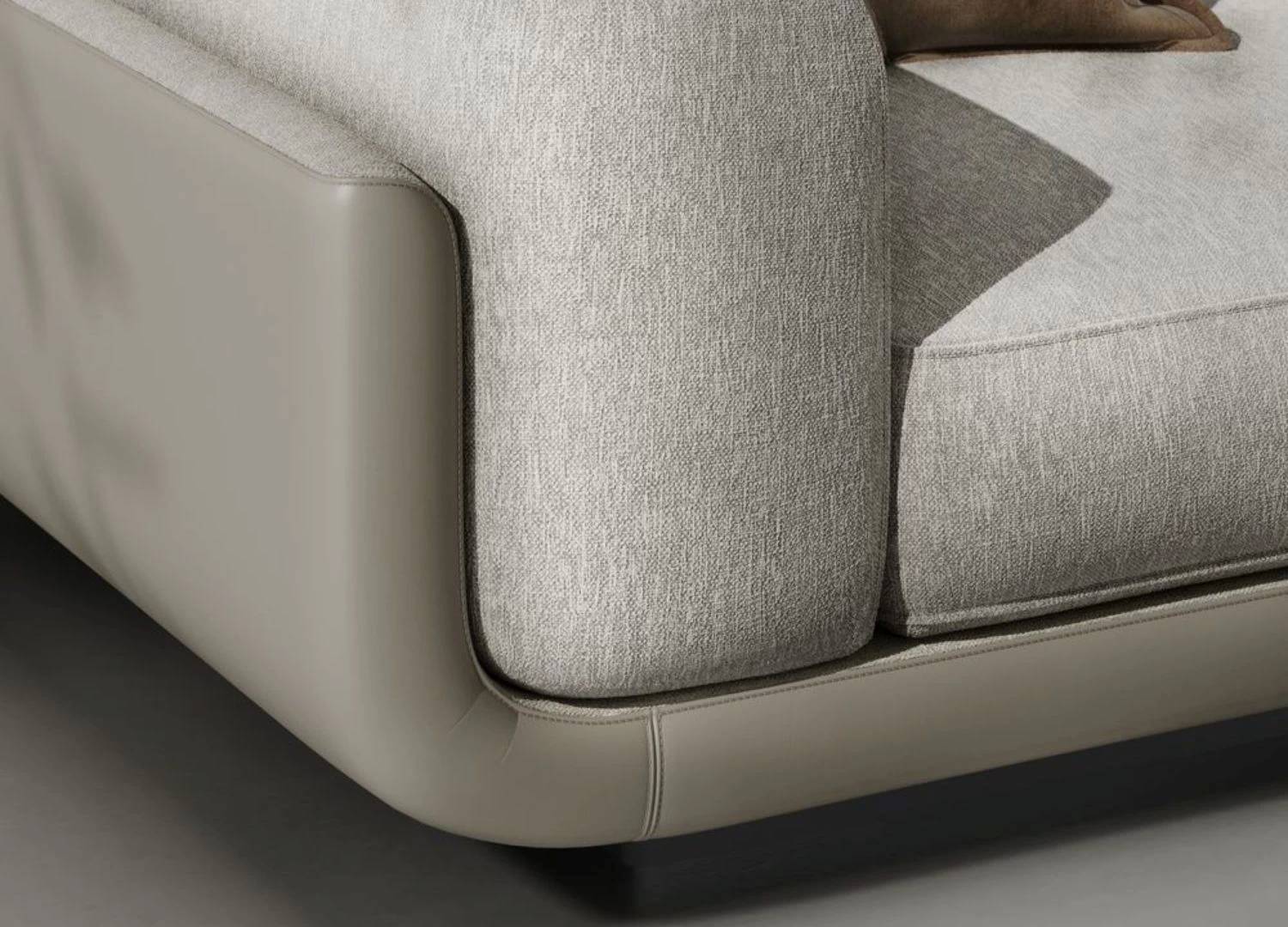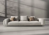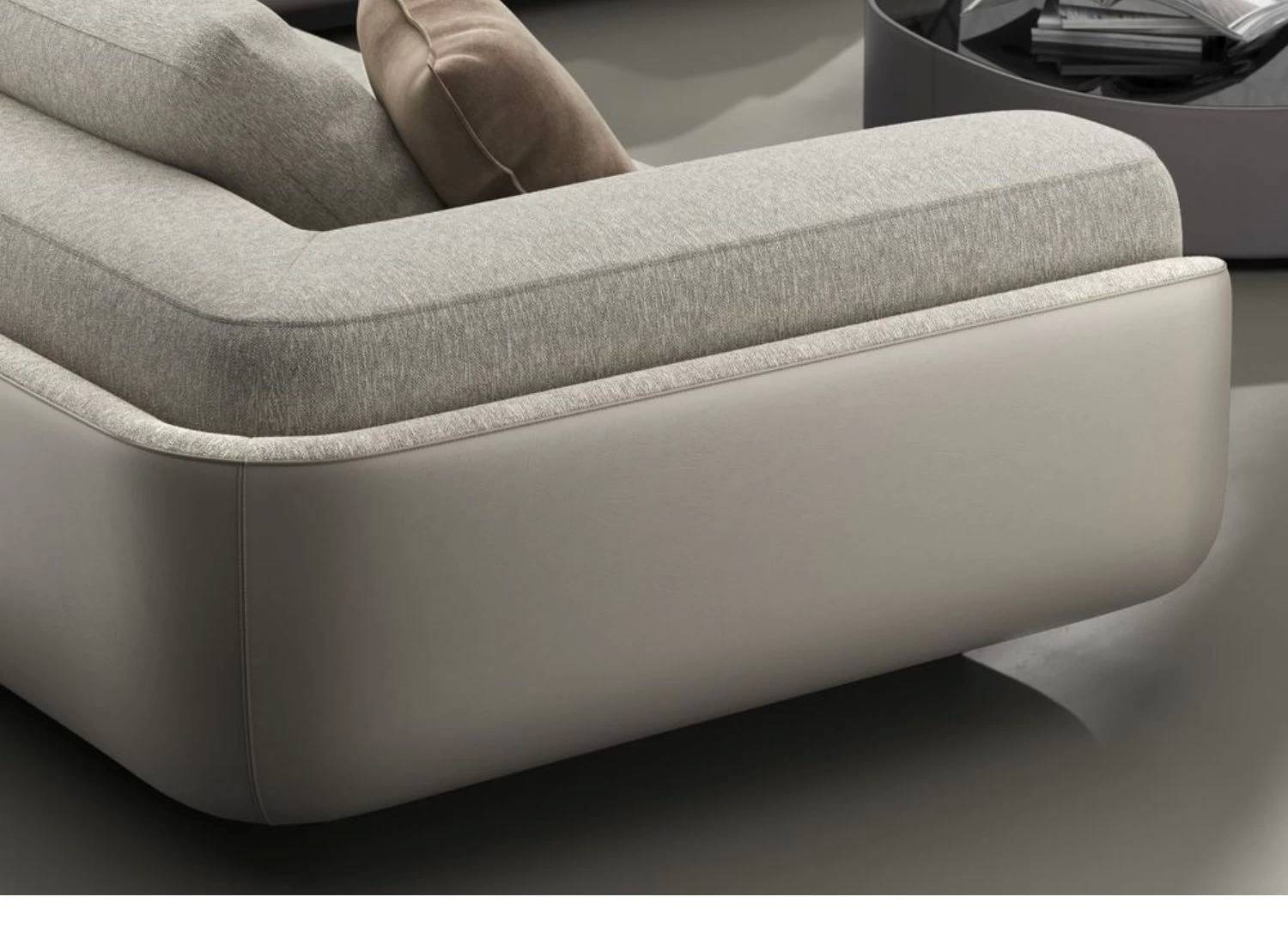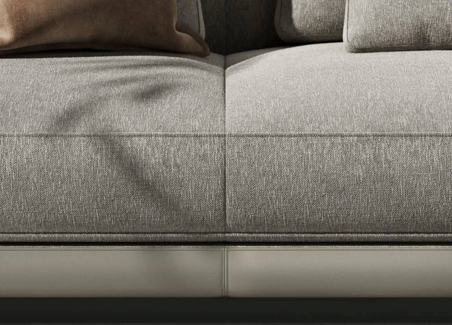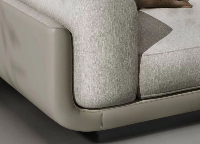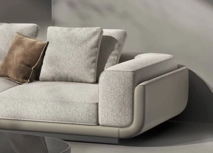 Η απαλή υφή του υφάσματος σε ουδέτερη απόχρωση δημιουργεί μια ζεστή και φιλόξενη ατμόσφαιρα, ενώ τα βαθιά και άνετα καθίσματα προσφέρουν μοναδική εμπειρία χαλάρωσης. Τα φαρδιά μπράτσα και τα μαλακά μαξιλάρια ενισχύουν την αίσθηση πολυτέλειας και άνεσης.