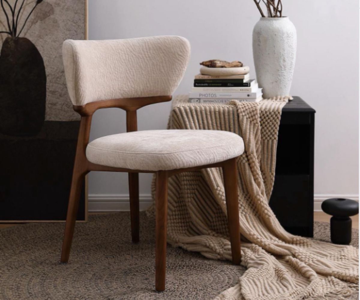 Η καρέκλα SONIA συνδυάζει με μοναδικό τρόπο τη διαχρονική αισθητική με τον μοντέρνο σχεδιασμό, δημιουργώντας ένα κομψό και λειτουργικό κάθισμα για κάθε χώρο. Ο ιδιαίτερος συνδυασμός υφάσματος και χειροποίητου ξύλινου σκελετού αναδεικνύει τις γραμμές της, προσδίδοντας έναν έντονο χαρακτήρα mid-century modern.