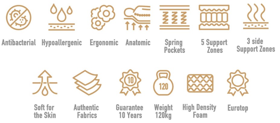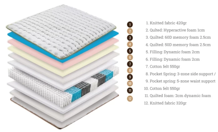 Το καινοτόμο σύστημα ανεξάρτητων ελατηρίων περιλαμβάνει 8 ζώνες στήριξης—5 στο κεντρικό τμήμα της μέσης και 3 περιμετρικά—προσφέροντας στοχευμένη υποστήριξη ακριβώς εκεί που τη χρειάζεται το σώμα σας. Έτσι επιτυγχάνεται ομοιόμορφη κατανομή του βάρους και μέγιστη χαλάρωση κατά τη διάρκεια της νύχτας.